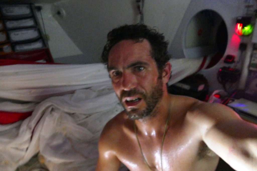 Cette nuit, tout a bien commencé sous spi avec de belles glissades, le vent est monté, j’ai pris un ris, et le spi s’est déchiré sur sa partie basse. Après, pour renvoyer le gennaker, j’ai dû bricoler parce que j’avais un problème d’emmagasineur. Ca m’a pris du temps, et je n’ai pas arrêté de la nuit. Une nuit blanche… Alex est un peu plus au large, on ne sera pas loin tous les trois avec Alessandro. Je le rattrape, je pense qu’on formera un beau trio d’arrivées internationales ![/quote]