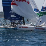 « Finalement, c’est une belle journée pour nous. Nous n’étions pas très contents de nos prestations, mais les autres ont été moins bons que nous. Les jeunes de Vannes Agglo ont très bien navigué, Spindrift aussi, et nous prenons un point d’avance supplémentaire au classement général. Les vents étaient très instables, c’était très dur, la tramontane n’était pas bien installée, il y avait tantôt du vent, tantôt plus du tout. Tactiquement, ce fut très dur, ça a pas mal brassé. On fait une mauvaise manche, mais d’autres ont dû en faire autant que nous. On conclut par une super finale, pour prendre la troisième place du jour. On s’en contente largement. Spindrift reprend deux points et va se battre un peu avec Groupama. Nous, nous allons continuer à naviguer jour après jour. On attendra la fin pour compter les points. »