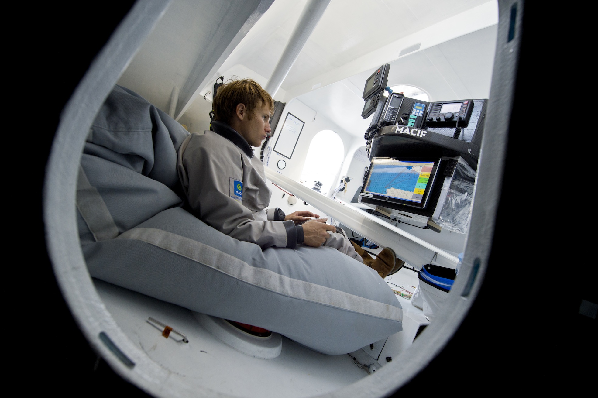 [quote]J’essaie juste de sortir de là, tout comme Jean ! (rires) En fait, nous avons vraiment passé des journées terribles et il nous a fallu énormément de temps pour pouvoir commencer à remonter. Et ce n’est pas terminé, nous allons encore devoir beaucoup manœuvrer. Je pense que nous allons enfin pouvoir avancer et adopter une trajectoire plus directe, mais pas avant demain soir. Je suis d’accord avec Jean quand il dit qu’il n’avait jamais vu l’Atlantique Sud aussi déchaîné. C’est vrai que les conditions étaient terribles. Habituellement, on trouve un cap qu’on arrive à tenir un long moment. Ensuite, en une ou deux manœuvres, vous vous retrouvez à Recife et voilà ! Les conditions actuelles sont exceptionnelles. Je pense que ma position actuelle est intéressante, surtout sur le long terme, mais Jean fait ce qu’il faut pour limiter la casse de son côté. Au final, j’espère pouvoir m’en sortir correctement mais il va falloir travailler dur, surtout avec Jean, qui est très rusé et qui va tout faire pour tirer le meilleur avantage de ses conditions à lui. Les hydrogénérateurs ne fonctionnent plus depuis les mers du sud. Bien sûr nous avons une réserve de carburant à bord, et nous avions aussi choisi de diversifier nos sources d’énergie: hydrogénérateurs, solaire et carburant. Mais c’est difficile de déterminer la quantité de carburant dont nous allons avoir besoin pour la suite. Et comme nous n’en avons plus tant que ça en réserve, c’est assez stressant… [/quote]