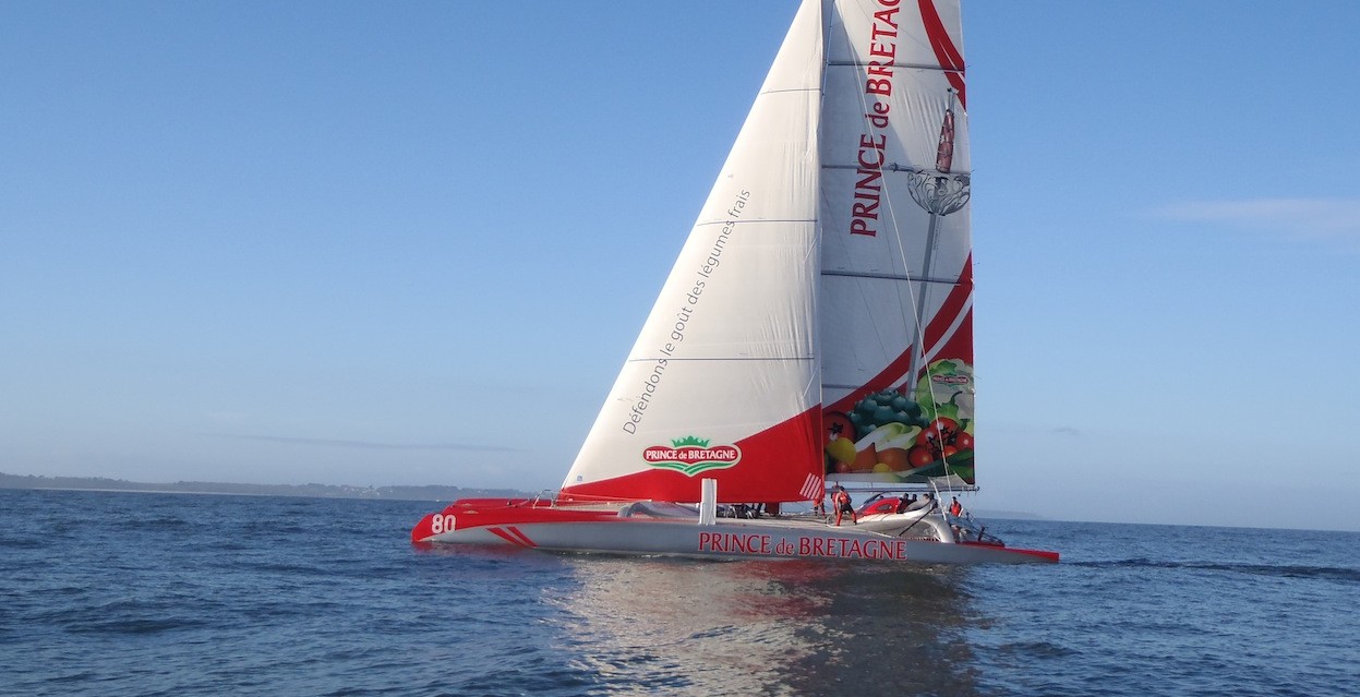 Le Prince se jette à l’eau ! C’est vendredi dernier que le nouveau Maxi 80 Prince de Bretagne a largué les amarres qui le retiennent au ponton de la base de Keroman à Lorient, et fait sa toute première sortie en mer. Une première bouffée d’air iodé pour ce trimaran de 24,38 mètres récemment sorti de chantier, qu’ont observé et analysé avec attention tous ceux qui oeuvrent au plus près dans sa mise au point. Entourés d’une garde rapprochée de spécialistes (architectes, ingénieurs, constructeurs…), Lionel Lemonchois et son équipe ont étrenné ce bel oiseau du large, avant de plus longues sessions océaniques qui promettent de monter crescendo.