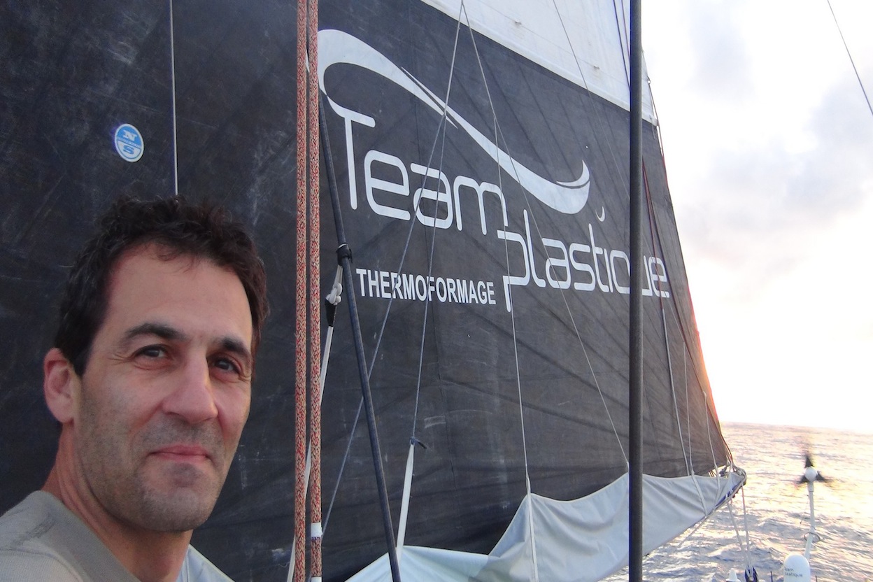 Ces conditions demandent d’être très vigilant et d’être beaucoup aux manœuvres, surtout pour être rapide dans la prise des ris (réduire la surface exposée au vent) à la grande voile et avoir le bon angle au vent quand les fortes rafales arrivent. Je n’ai pas eu beaucoup de repos les derniers jours pour faire avancer le bateau au mieux mais je suis en forme et le bateau se porte bien aussi. Dans les moments de relatif calme entre un grain et l’autre, j’écoute de la musique, je prépare des petits repas chauds, je réponds aux questions des journalistes avec l’ordinateur et j’essaye de me reposer. Pour le déjeuner j’ai mangé de la purée au jambon et une petite salade du « giardinetto », le petit potager que j’ai à bord de Team Plastique. Ce matin pour le petit déjeuner ça a été du café au lait et du pain grillé. Je me trouve à un peu plus de 300 milles du Cap Finisterre et à un peu moins de 700 milles (en vol d’oiseau) des Sables. Hier dans la nuit j’ai croisé quelques cargos. Je suis très concentré sur ces dernières centaines de milles qui ne vont pas être les plus simples du parcours, la faute surtout au trafic maritime et au vents variables… », précisait le skipper dans un message parvenu cet après-midi par mail (les perturbations orageuses empêchant pour l’instant de joindre Alessandro Di Benedetto par téléphone). A l’approche de la nuit, le vent devrait faiblir à moins de 15 noeuds avant de chuter considérablement demain en début de matinée. Là, il deviendra très variable et oscillera entre 3 et 6 noeuds selon les prévisions météorologiques. Des conditions très défavorables au seul bateau à quille fixe de la flotte, moins puissant que ses concurrents.