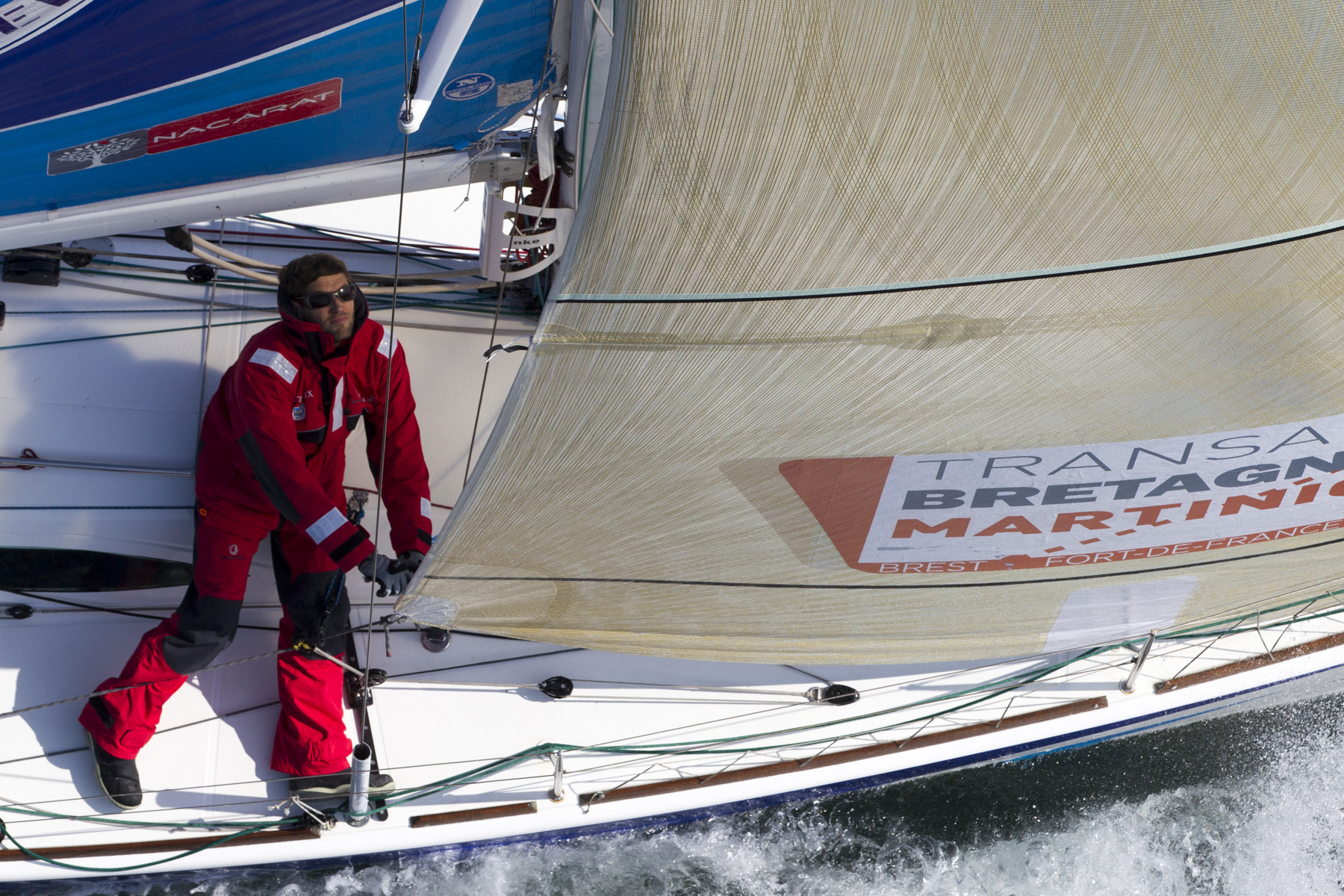 « Nous sommes encore dans une transition. Le vent a molli et il a tourné. Les conditions météo sont calmes. Nous étions sous spi il y a encore une demi-heure. Là le vent a refusé, nous sommes sous génois et nous allons va attaquer un long bord de près. On va être obligé de suivre la rotation du vent, nous n’aurons pas le choix, donc la seule possibilité ce sera de virer de bord en fonction de ce que l’on veut faire et si on veut aller chercher la bascule le plus vite. Je vais réfléchir et me décider ce matin, je vais prendre les classements que je n’ai pas encore regardés car je viens de rentrer dans le bateau, j’étais en train de changer de voile. Je ne sais pas encore où sont les autres. En début de nuit on a eu des grains, de la pluie, beaucoup de vent et pas grand chose après. Nous sommes restés presque une heure comme ça, en fin de soirée avec du vent mou, c’était un peu bizarre. Il n’y a pas énormément de choses à faire si ce n’est de changer de voile et de réduire pour le coup de vent. Ce qu’il faut surtout, c’est arriver avec des forces, donc se reposer avant, et pendant, gérer au mieux la force du vent avec des manœuvres. Il y aura du boulot. Sépalumic et DLBC Module Création sont à moins d’un mile de moi, 0,5 je crois même. J’ai essayé une option pas trop mal dans le passage du DST, je me suis retrouvé un peu derrière puis je suis remonté dans un petit grain. Chacun en profite un peu de temps en temps ».