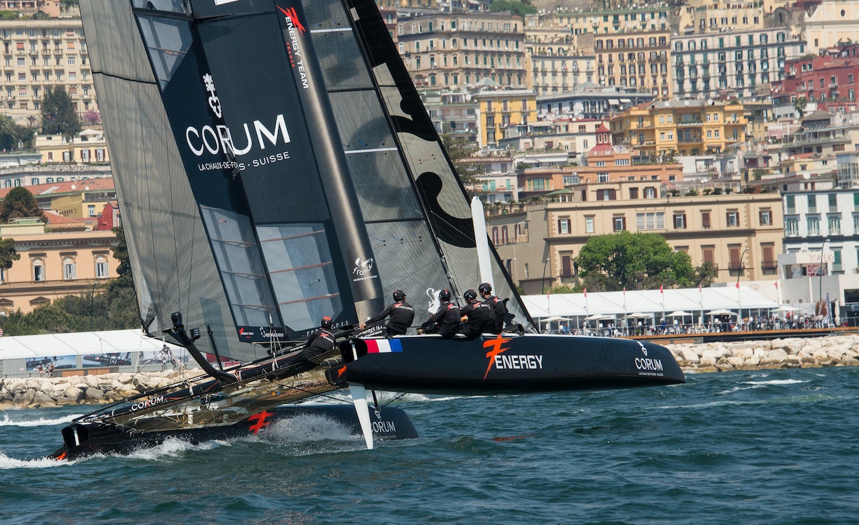 A cause d’un problème technique sur la martingale de l’AC45 Energy Team, Yann Guichard et ses hommes ne peuvent malheureusement prendre le départ de cette cinquième régate en flotte napolitaine. Un manche remportée par Emirates Team New Zealand très en forme aujourd’hui, devant Oracle Team USA et Luna Rossa Piranha. Résolu rapidement, cette avarie mineure n’empêchera toutefois pas le team français de participer à la seconde manche du jour.