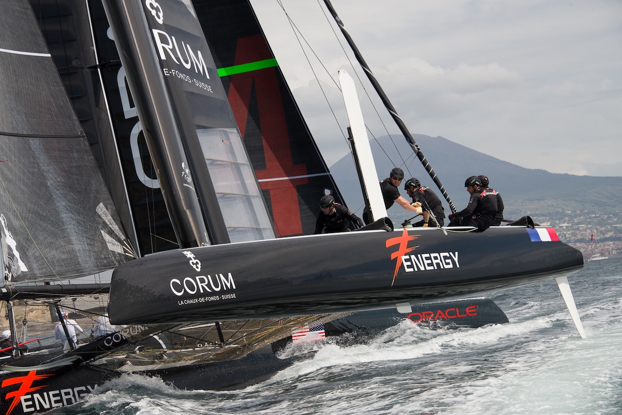 A cause d’un problème technique sur la martingale de l’AC45 Energy Team, Yann Guichard et ses hommes ne peuvent malheureusement prendre le départ de cette cinquième régate en flotte napolitaine. Un manche remportée par Emirates Team New Zealand très en forme aujourd’hui, devant Oracle Team USA et Luna Rossa Piranha. Résolu rapidement, cette avarie mineure n’empêchera toutefois pas le team français de participer à la seconde manche du jour.