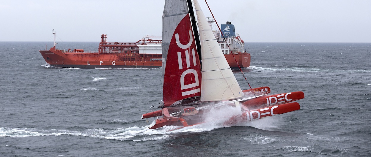 La dernière nuit, à l’approche du plateau continental, offrait une mer particulièrement piégeuse aux étraves d’Idec. « J’ai trouvé que le bateau plantait beaucoup. Dans la nuit noire, je n’y voyais goutte mais l’angle au vent était parfait. Alors j’ai remis du charbon. » Les derniers milles, avec un vent légèrement refusant à l’approche des côtes contraignait Francis à naviguer travers au vent. Une configuration à peine moins rapide, mais qui garantissait une arrivée toujours ventée sur la pointe occidentale de la Cornouaille anglaise. « Je ressens un certain mélange d’émotion, la lassitude mais aussi l’euphorie d’avoir accompli la tâche que je m’étais fixée… »