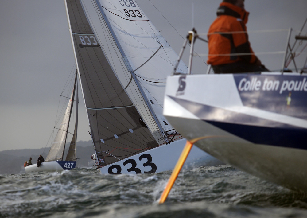 Dans leur sillage, Chasseur de prime (Bertrand/Pulvé), Roll my Chicken (Segre/Raison), Mare (Riechers/Brasseur) et Mécénat chirurgie cardiaque (Leopold Léger/Léopold Léger) ont fait de même. Mais si les premiers vont pouvoir bénéficier de cette jolie brise toute l’après-midi pour s’échapper vers le Fastnet, derrière, le vent va peu à peu s’évanouir. Lorsque les derniers auront contourné les DST, il ne leur restera que des miettes de brise…