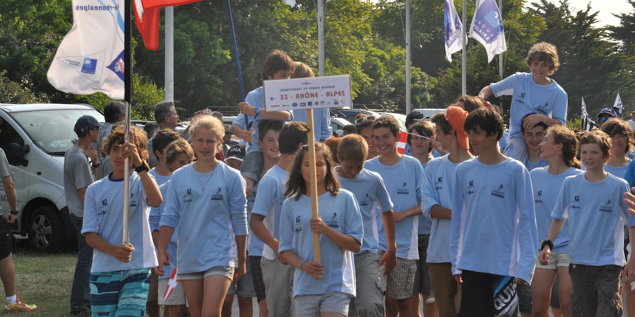 A 18h, les délégations ont défilé sur le site de l’ENVSN lors de la cérémonie d’ouverture. En présence de nombreux élus et officiels, la directrice de l’ENVSN, Isabelle Eynaudi, a remercié la FFVoile d’avoir à nouveau confié l’organisation du Championnat aux équipes de l’Ecole. Après les traditionnels serments des coureurs, entraineurs, arbitres et jeunes arbitres, Geneviève Marchand, maire de Saint-Pierre Quiberon et Cédric Fraboulet, délégué fédéral ont déclaré officiellement ouvert le Championnat de France Minimes 2013