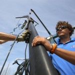 « Les voiliers, j’ai l’habitude. La manœuvre se décompose en trois étapes. On commence par le démâtage puis on pose le mât et les marins ont le temps de le préparer pendant que je sors le bateau. Ensuite, je reprends le mât pour le reposer sur la coque. »