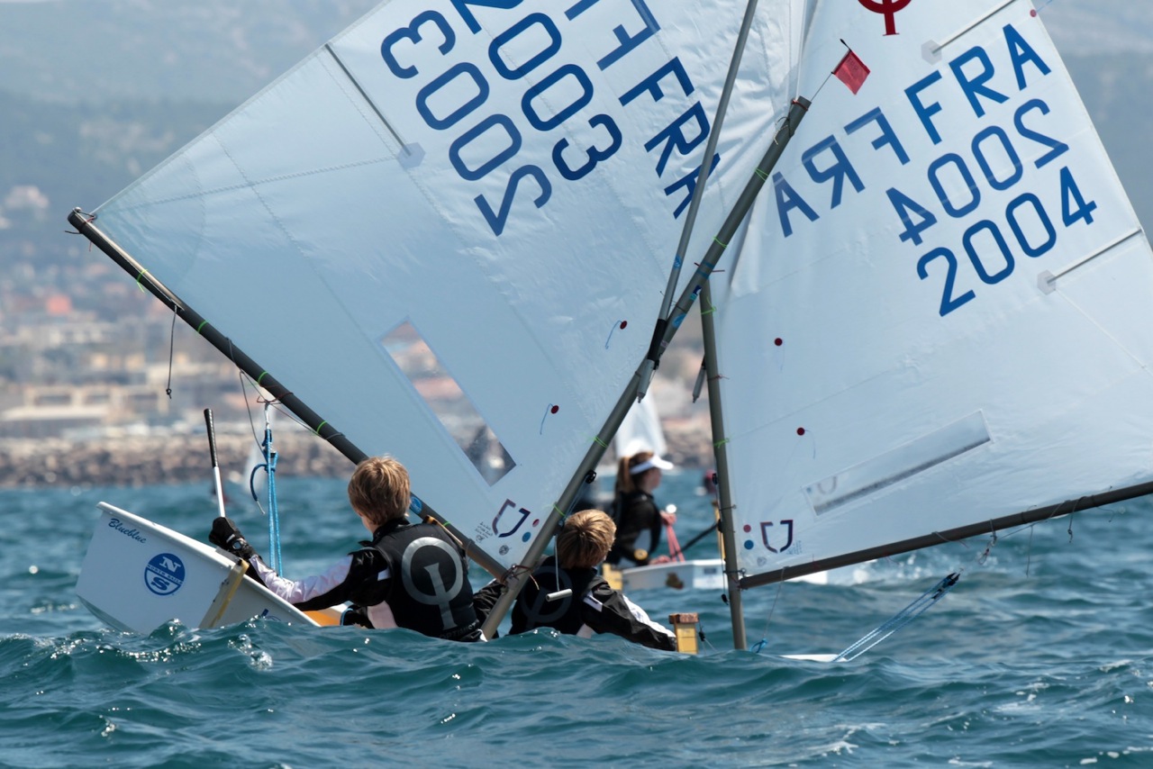 Sur la ligne de départ, le sérieux et la concentration prennent le dessus sur le jeu. Au signal sonore, les 8 optimists s’élancent dans un vent moyen de 8 nœuds. Dès la première bouée, Jelmer Velds coince et colle deux poux sur l’extérieur du parcours. Léa Morin est venue secourir ses co-équipiers et n’a ensuite pas lâché Jelmer Velds du parcours. Efficace mais insuffisante, la stratégie n’a pas payé. Déçue, l’équipe bougonne avant le rappel à l’ordre de Léa « ce n’est pas grave, ce n’est qu’une manche, on se prépare pour la deuxième ». Sur la ligne, la pression monte et l’enjeu est de taille, tout peut s’arrêter à la fin de cette manche. Ça se chamaille dur sur tout le parcours. Le jury, sifflet à la bouche, a les yeux rivés sur les nombreuses mains qui se lèvent pour protester. Les « Poux » finissent par l’emporter. Une dernière manche est alors lancée. Très pressé de franchir la ligne, Jelmer Velds (équipe belge) est rappelé individuellement. Sur l’avant dernière marque, « Les poux » perdent leur avance. La bataille est tactique sur la dernière ligne droite. Jusqu’au bout, les uns essaient d’isoler les autres. La victoire reviendra aux « Poux » : « On a de la chance de bien s’entendre et de bien communiquer. On a pris de bons départs et ça a payé pour la suite » raconte Alice Chiappori du Yacht Club d’Antibes.