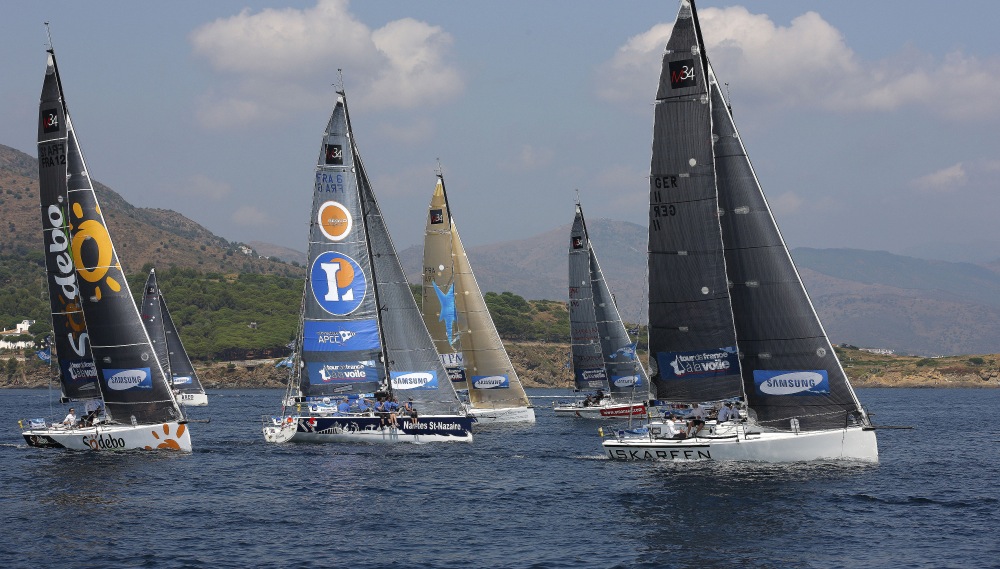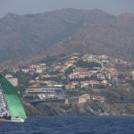 La flotte est d’abord partie au moteur de Roses pour rallier le port catalan de Selva, à 41 milles de l’arrivée. Le départ est lancé là, dans six nœuds de nord-est. Un bord de près pour se dégager de la baie, une bouée de dégagement enroulée en premier par Courrier Dunkerque et c’est parti sous spi jusqu’à Gruissan.