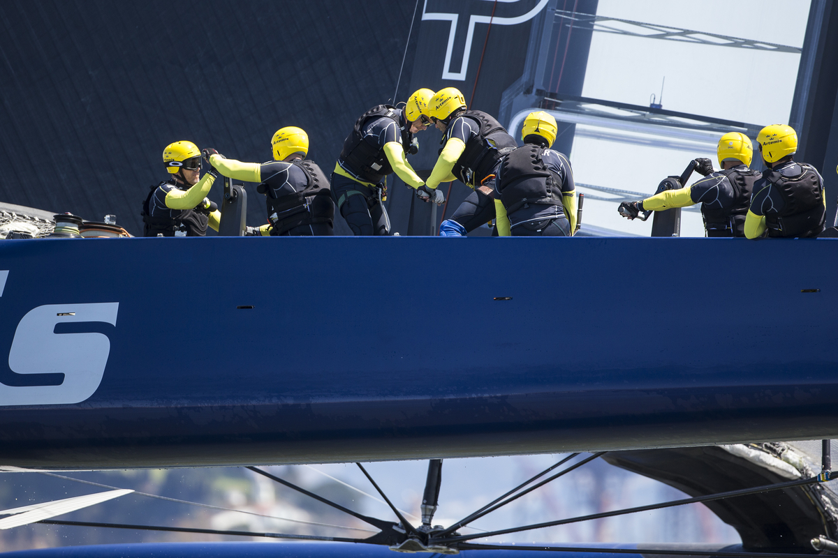 Seconde sortie pour les Suédois D’Artemis Racing à bord de leur AC72 à la livrée bleue à quelques jours des semi-finales de la 34e America’s Cup. L’équipe suédoise menée par Iain Percy GBR a pansé ses blessures et se prépare à affronter les Italiens de Luna Rossa. Pour l’honneur ?