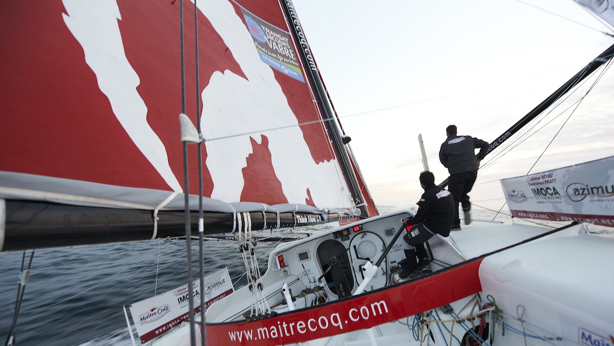 Le Team Maître CoQ est en route pour Le Havre, port de départ de la Transat Jacques Vabre. Ce convoyage entre la Bretagne et la Normandie est bien sûr un ultime entraînement pour Jérémie Beyou et Christopher Pratt, mais c’est aussi la meilleure des façons de se dire : on y est ! Le duo Maître CoQ est attendu au Havre le 25 octobre et le départ de cette longue transat vers le Brésil est prévu le 3 novembre prochain.