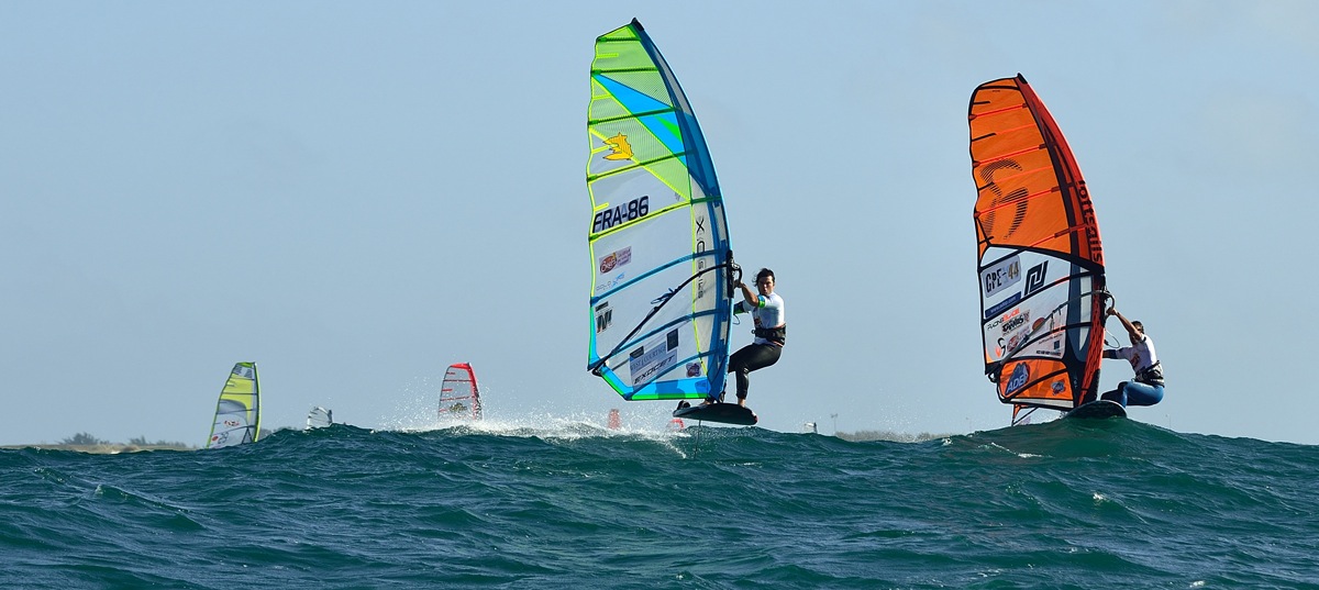 A 13h30, les hommes se sont élancés par 15 nœuds de vent dans une houle importante, mais sans déferlantes. Antoine Questel s’impose dans la première manche du jour devant Cédric Bordes et Pierre Mortefon. Damien Le Guen réalise une superbe deuxième manche qu’il remporte devant Antoine Questel.