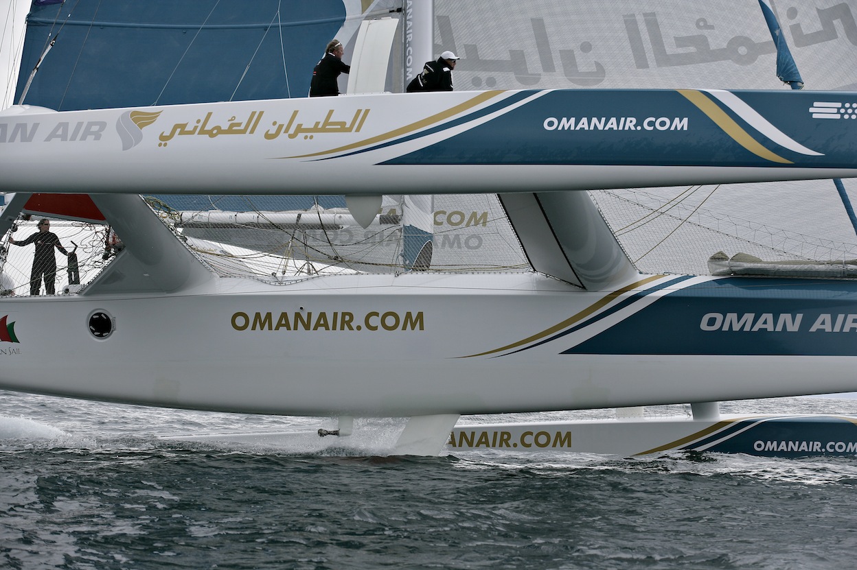 Ils ne sont plus que deux MOD70, suite au chavirage du Virbac-Paprec 70 de Jean-Pierre Dick et Roland Jourdain. Pour ces deux grands trimarans, la Transat Jacques Vabre aura des allures d’un duel à couteaux tirés, voire d’un véritable match race au beau milieu de l’Atlantique. « Comme la Coupe de l’America a montré qu’on pouvait faire du match race en multicoque, nous, on va le faire au large ! », plaisante Sidney Gavignet (Oman Air – Musandam). « On se connaît bien tous les quatre, Sébastien (Josse), Charles (Caudrelier), Damian (Foxall) et moi. C’est une très bonne concurrence. A mon avis, tout du long, ce sera du contrôle permanent de l’adversaire. On va beaucoup se regarder… Le point fort de Sébastien et Charles est qu’ils ont beaucoup d’expérience, qu’ils connaissent bien leur bateau, qu’ils fonctionnent bien ensemble. Notre point fort, c’est qu’on pousse un peu plus je pense. Mais la première partie, la sortie de la Manche, devrait être chaude… Il va falloir doser et rester dans une bonne marge de sécurité ».