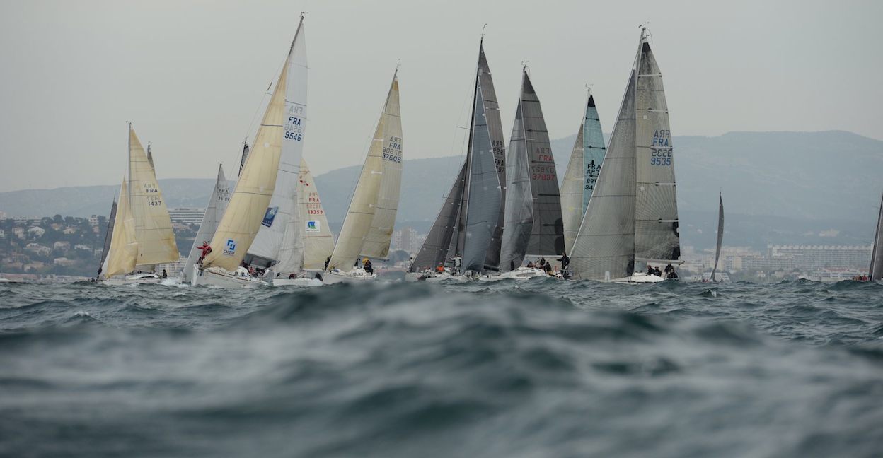 Après le briefing d’accueil les 55 IRC engagés sur la Massilia Cup quittent tranquillement le Vieux-Port.