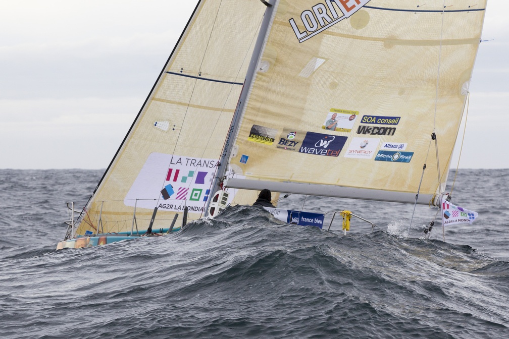 30 nœuds dans les rafales, une grosse mer, des bateaux penchés au près serré, l’entame de la 12e édition de la Transat AG2R LA MONDIALE se montre tonique pour les 15 équipages partis hier de Concarneau. Ce matin à 5 h, le tandem Jean Le Cam / Gildas Mahé sur Interface Concept, plus proche de la route directe que ses concurrents, est leader au classement. C’est aujourd’hui que tous vont virer de bord pour descendre vers le sud.