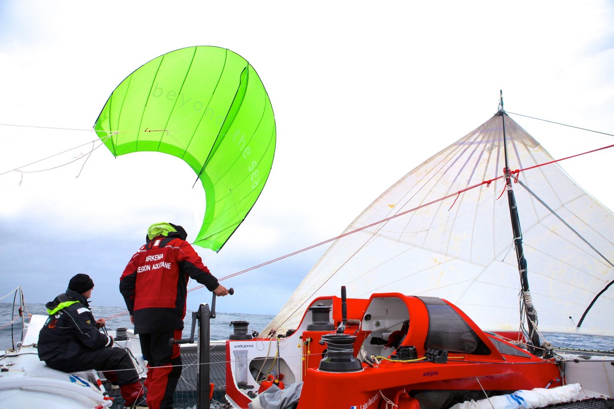 Partis le 29 mars dernier du port de Caniçal à Madère, Lalou Roucayrol et son trimaran Arkema – Région Aquitaine sont arrivés à Las Palmas aux Canaries. Equipé d’ailes de kite surfs, il aura fallu 4 jours de mer au trimaran tracté pour parcourir les 300 milles nautiques entre les deux îles. Cette solution innovante, initiée par Yves Parlier, permet au skipper de tenir son planning : le chantier de remise en état et préparation du Multi50 Arkema – Région Aquitaine est lancé !