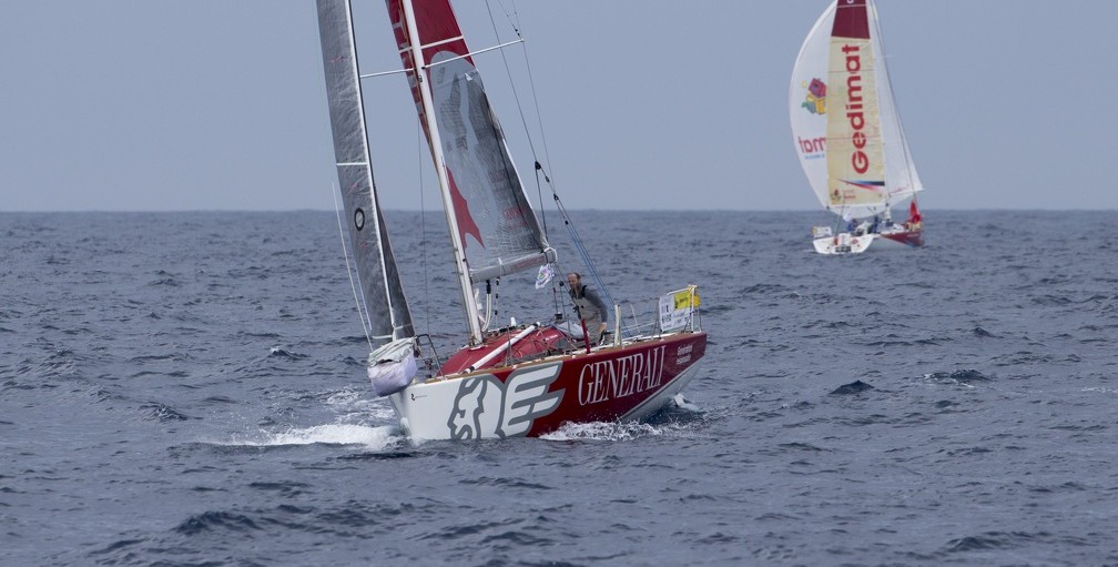 Entre les deux extrêmes, la majorité de la flotte fait de l’ouest, voire du sud-ouest, peut-être pour se laisser encore un peu de temps avant de se décider vraiment. « La priorité, c’est de trouver du vent. Pour nous, il y en a plus dans l’Ouest. Maintenant, on ne s’interdit pas de descendre dans le Sud le plus vite possible. » expliquait Kito de Pavant (Made in Midi) ce matin. Il y a donc ceux qui n’ont pas complètement tranché. Made in Midi, Interface Concept, et Gedimat sont dans ce cas. Erwan Tabarly avouait avoir mis en place une stratégie avec son compère Thierry Chabagny. Pour l’heure, ils font route vers l’Ouest. Secret du bord oblige, personne n’en saura plus ! Quant à Generali et Scutum, ils pointent au sud-ouest.