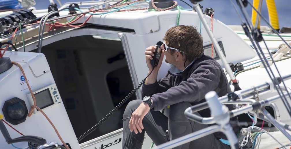 [quote]C’est une bonne bagarre avec Gedimat et Interface Concept. Ça a commencé hier, nous sommes à vue avec Interface Concept. Le vent oscille entre 8 et 10 nœuds, toujours de Nord-Ouest. Nous avons eu des périodes très instables cette nuit. Nous sommes restés collés sous un nuage et Interface Concept lui, est passé. La mer est plate avec un petit clapot. Il ne faut pas que le vent tombe trop parce qu’avec le clapot cela va être compliqué. Nous l’avons de face. Les fichiers météo n’annoncent pas beaucoup de vent mais globalement nous en avons un peu plus qu’indiqué. Il faut faire notre route en espérant avoir un peu plus de vent. Nous savons qu’au Sud les bateaux vont vite mais ils ne font pas tellement la route. Nous croyons à fond à notre option. L’ambiance à bord est top, avec des conditions météo supers. On profite de chaque instant qui passe.[/quote]