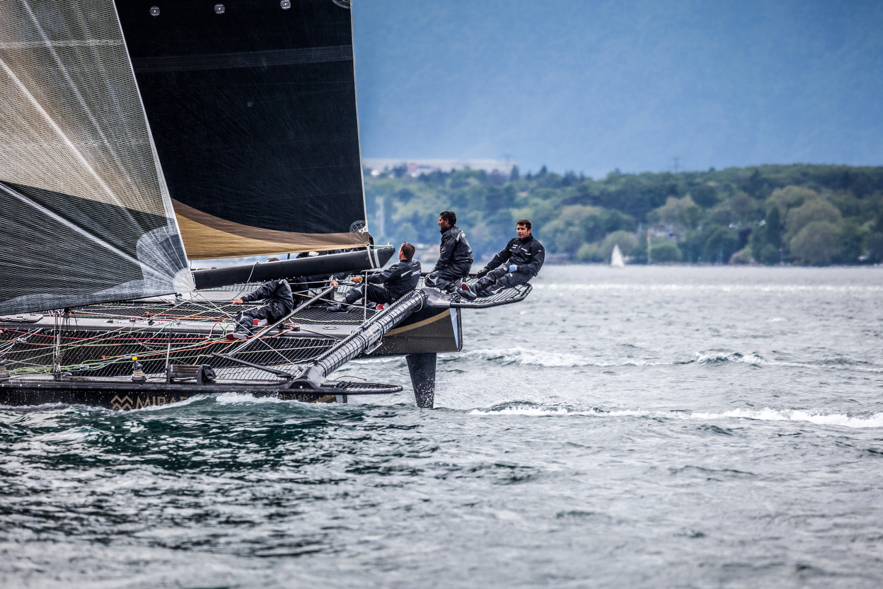Ce matin, avant même le coup de canon, la ligne de départ du Bol d’Or Mirabaud était très animée tant les rafales de bise ont creusé les eaux. Prêts de 20 nœuds de vent ont propulsé les Décision 35 en tête de course, position qu’ils garderont de bout en bout. Cette année, le Bol d’Or Mirabaud se caractérise, pour les D35, par une très grande homogénéité, preuve en est dès Versoix où, Ladycat powered by Spindrift racing, ZenToo, Alinghi et Veltigroup passent la marque quasi simultanément. En sortant du petit lac, Alinghi choisit l’option côte française à l’inverse de Mobimo, Veltigroup, Realstone, Ladycat et Zen Too. Au bout du compte, Alinghi rejoint les D35 et tous restent bloqué à Morges où la bise les lâche. Mais vigilants, les tacticiens repèrent vite de belles risées qui vont les pousser à bon train vers Le Bouveret. Tanguy Carriou, le tacticien de Team Tilt, empreinte la gauche du plan d’eau tout prêt des côtes et prend une belle avance mais c’était sans compter le peloton, regroupé au centre du lac, qui touche des airs denses et réguliers jusqu’au Bouveret. Ladycat powered by Spindrift racing contourne la barge, suivi de Veltigroup, s’ensuit un duel intense. Veltigroup pointe le bout de ses coques en tête à l’entrée du petit lac mais cette superbe course-poursuite jusqu’à l’arrivée ne suffit pas au D35 de Marco Simeoni, doublé par Ladycat powered by Spindrift racing juste avant l’arrivée, il apprend qu’il écope d’une pénalité pour franchissement anticipé de la ligne de départ. La victoire est pour Ladycat powered by Spindrift racing. La descente vers Genève est aussi pimentée par Realstone, Alinghi et Mobimo qui, aux aguets, restent sur les talons de Ladycat powered by Spindrift racing. Heureux, Yann Guichard résume sa course : «on n’est pas mal parti, on s’est retrouvé vite dans le rythme, on a plutôt bien navigué jusqu’au Bouveret et on est passé en tête. La rentrée dans le petit lac avec 25 nœuds de vent et de grosses rafales était un peu limite on était sur le fil du rasoir mais c’était un très beau finish.» Dona Bertarelli, skipper et propriétaire de Ladycat powered by Spindrift racing souligne que le Bol d’Or Mirabaud est un objectif important pour elle : «nous sommes en stand-by à New York en attendant une fenêtre météo afin de battre le record de la traversée de l’Atlantique Nord avec Spindrift 2 mais nous sommes revenus pour le Bol d’Or Mirabaud. On voulait être là. Je vais savourer cette victoire surtout qu’il y avait de la tension à bord du fait des conditions difficiles que nous avons traversées. Tout peut arriver : de la casse, un chavirage, on a dû rester très concentré tout au long de la course.»
