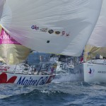Rapidement, Yoann Richomme (Skipper Macif 2014) prenait le meilleur et enroulait la bouée de dégagement en tête. Et dès qu’il put mettre le spinnaker, il creusait l’écart face à un pack très compact. Le leader d’alors avait donc du champ pour effectuer son empannage à la bouée sous le vent quand ses poursuivants bataillaient ferme pour perturber leurs adversaires et prendre l’intérieur à la bouée.