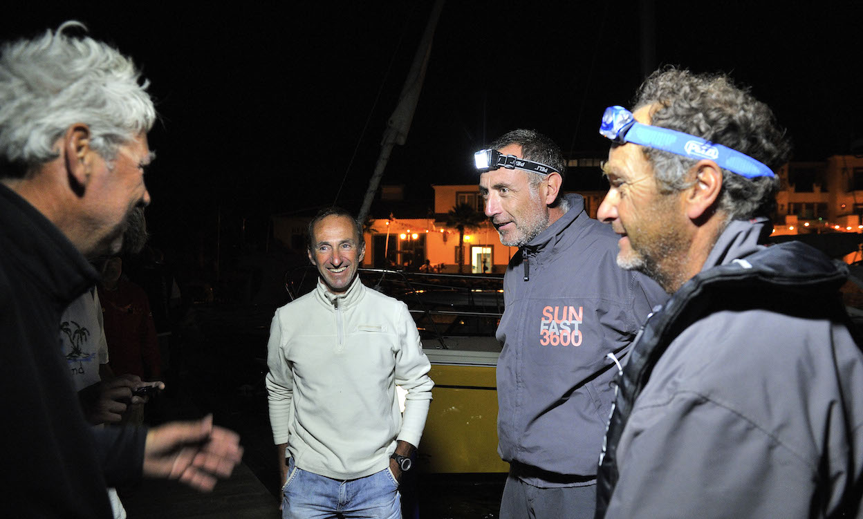 Arrivés à 04:02:30, un petit quart d’heure avant Jean-François de Prémorel et Philippe Laperche (04:16:15), les vainqueurs ont réalisé une course très dense, et indécise quant au résultat final, jusqu’à la dernière minute. »La bagarre a été superbe. Il y a peu d’écart entre les deux bateaux, alors tu n’as pas le droit de te relâcher. Le moindre grain ou nuage peut départager un concurrent et celui qui s’en sort le plus vite peut prendre l’avantage. Ensuite il faut ramer pour le raccrocher ». Jean-François de Prémorel confirme. » On a été ensemble pratiquement tout le temps et la dernière journée à vue. Mais ils arrivent devant, nous sommes un peu déçus. Ils ont bien navigué comme d’habitude, toujours au bon endroit. » Jean-Pierre kelbert est ravi d’avoir retrouvé Hervé Perroud 9 ans après leur dernière Transquadra. »Un pur bonheur cette course que du portant et de la glisse le bateau aime ça et nous aussi. Jean-François et Philippe ont été très pugnaces. Je crois que le plus gros écart entre nos deux bateaux a été de 15 milles, un vrai match racing. On a levé le pied la nuit de baston au cap Finisterre avec 40 nds de vent, exactement au même endroit où on avait pété un safran avec Hervé il y a 9 ans. On a rien cassé (option génois) mais on s’est fait copieusement mettre par pas mal de monde. Hervé a fait une superbe navigation tout au long de la course. On a toujours été du bon côté. ça s’est joué à pas grand chose! »