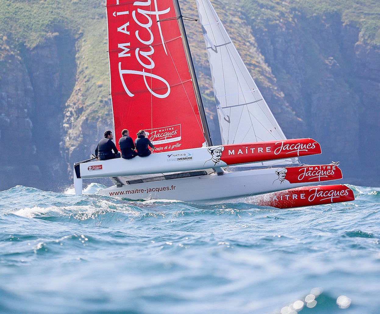 Les week-ends se suivent et ne se ressemblent pas pour le skipper Maître Jacques. Après le Trophée Prince de Bretagne – Côtes d’Armor la semaine dernière en Multi 50, Loïc sera dès demain sur les rangs de sa troisième épreuve en Diam 24 OD : le Grand Prix de Port la Forêt. Une dizaine de concurrents est attendue, dont de nouveaux venus et, à chaque épreuve, le niveau grimpe… 5e du Grand Prix de l’École Navale début juin, puis 2e du Raid Emeraude trois semaines plus tard, le team Maître Jacques va tenter d’accrocher un top 5, voire un podium, sur sa troisième épreuve de la saison en Diam 24 OD. Les équipages les plus rôdés, à l’instar de celui de Vincent Riou (PRB) seront au rendez-vous demain, dans la « vallée des fous », mais la flotte va également s’enrichir de nouveaux venus à l’instar de l’équipage de Nicolas Troussel (Bretagne Crédit Mutuel), accompagné pour l’occasion de Jérémie Beyou (skipper Maître CoQ). Cela va être passionnant à vivre et à partager ! Sur ce circuit en construction qui monte doucement et sûrement en puissance, le Team Maître Jacques a été l’un des premiers à prendre sa place. D’entrée de jeu, le support avait séduit Loïc : le bateau est sain et performant, le niveau sportif était déjà là… Mais cela ne faisait que commencer, pour le plus grand plaisir du skipper Maître Jacques : « le Diam 24 OD représente une belle opportunité de naviguer, et à haut niveau. De plus en plus, nous allons assister à un mélange des genres et des expériences qui seront riches d’enseignements sur ce circuit : cela va être passionnant à vivre et à partager ! » Dès sa présentation au Nautic 2014, le Diam 24 OD avait en effet séduit de grands noms de la course au large : François Gabart, Vincent Riou, Bernard Stamm, Lionel Lemonchois, Bruno Jourdren, Loïc Peyron… Et, depuis sa désignation comme support du Tour de France à la Voile fin juillet, de grandes équipes de course au large sont venues les rejoindre : Groupama Sailing Team (Franck Cammas), Courrier Dunkerque (Daniel Souben), Oman Sail (Sidney Gavignet), Bretagne Crédit Mutuel (Nicolas Troussel)… et ce n’est pas fini. Trois jours de course attendent les concurrents de ce Grand Prix de Port la Forêt, les premières manches seront lancées demain, 29 août, à 15h.