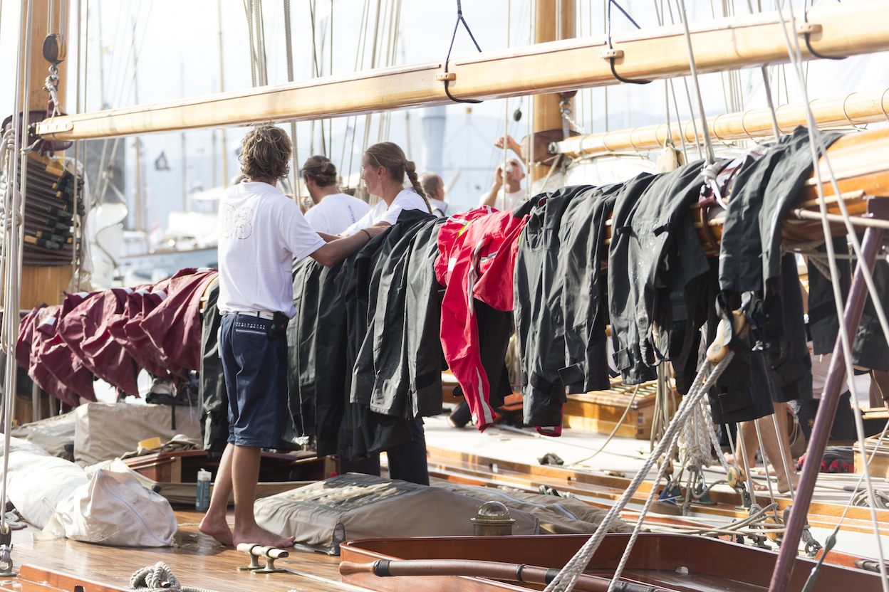 Prime à l’audace pour les Britanniques de The Lady Anne (Fife 1912), qui en limite de « range », 22 noeuds et plus, envoyait crânement et dès le coup de canon de départ la voile de flèche, entre le mât et la corne, ainsi que la « bulle », cette petit voile d’avant asymétrique. Le plus « récent » des quatre 15 m JI engagés dans leur Trophée annuel grillait dès lors la politesse à ses adversaires, et s’imposait de bord en bord pour l’emporter largement lors des deux manches du jour. C’est Mariska (Fife 1908), attendu comme un favori, qui parvient à consolider sa seconde place du jour, devant les espagnols d’Hispania, qui profitaient de l’abandon de Tuiga (Fife 1909), handicapé par une avarie de mât. Le navire amiral du Yacht Club de Monaco doit hélas se retirer de la course.
