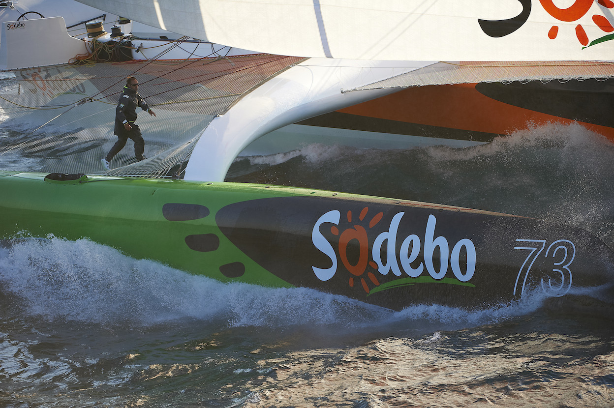 [quote]Nous nous sommes fait plaisir avec des pointes au-dessus de 40 nœuds (environs 75 km/h, au moins trois fois la vitesse maximale d’un voilier de croisière d’une douzaine de mètres). Je sens Sodebo Ultim’ vif et léger. Il arrive à un stade de mise au point où l’on peut aller vite sereinement, même sous pilote automatique (qui barre à la place du marin). C’est très agréable. Mais c’est vrai que nous avons l’angoisse du pépin technique qui peut devenir une vraie galère si près du départ de La Route du Rhum.[/quote]