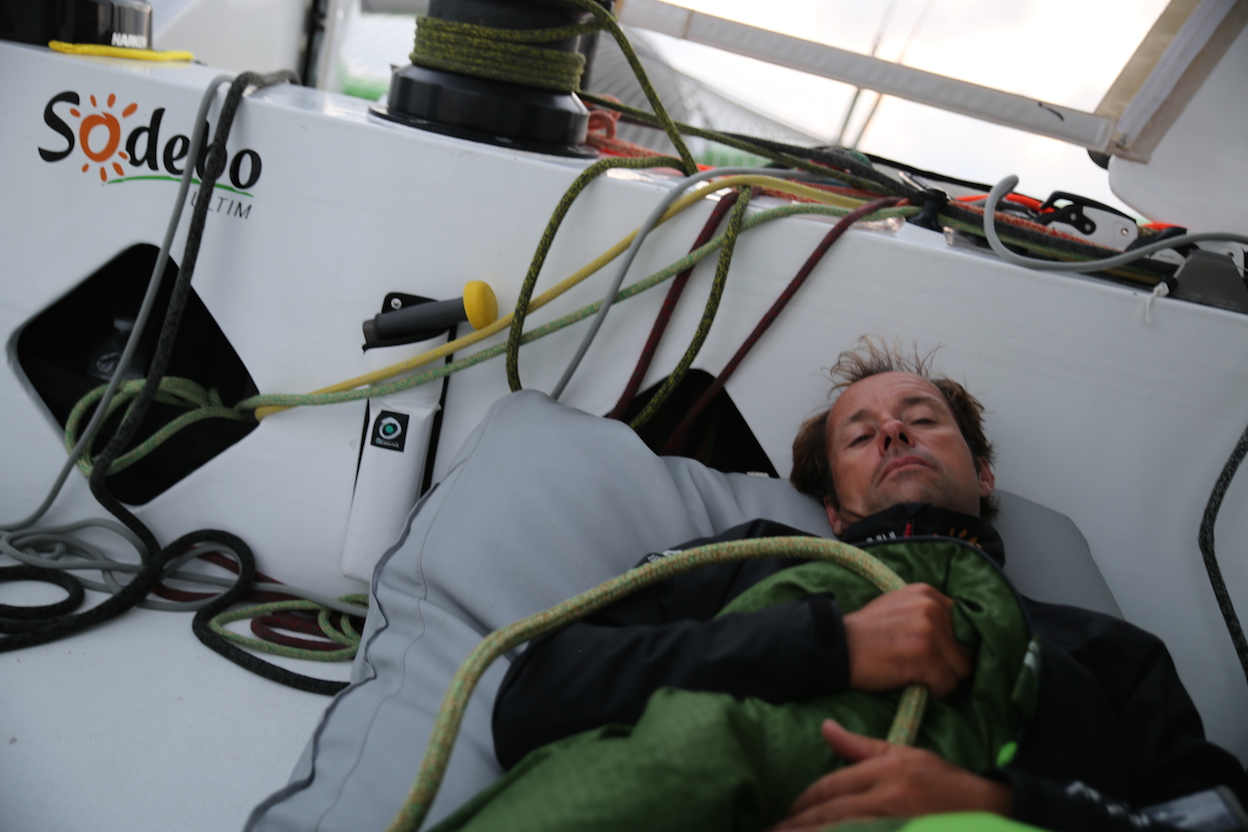 Non, Sodebo Ultim’ ne jette pas l’ancre chaque nuit même quand il fait une nuit d’encre mais alors, comment fait Thomas ? « Avant je m’efforçais de dormir le jour pour être actif la nuit mais ma faculté à m’endormir est meilleure la nuit alors j’ai changé de méthode, » précise-t-il. « Je n’ai jamais eu de rapport anxiogène avec la nuit mais … »