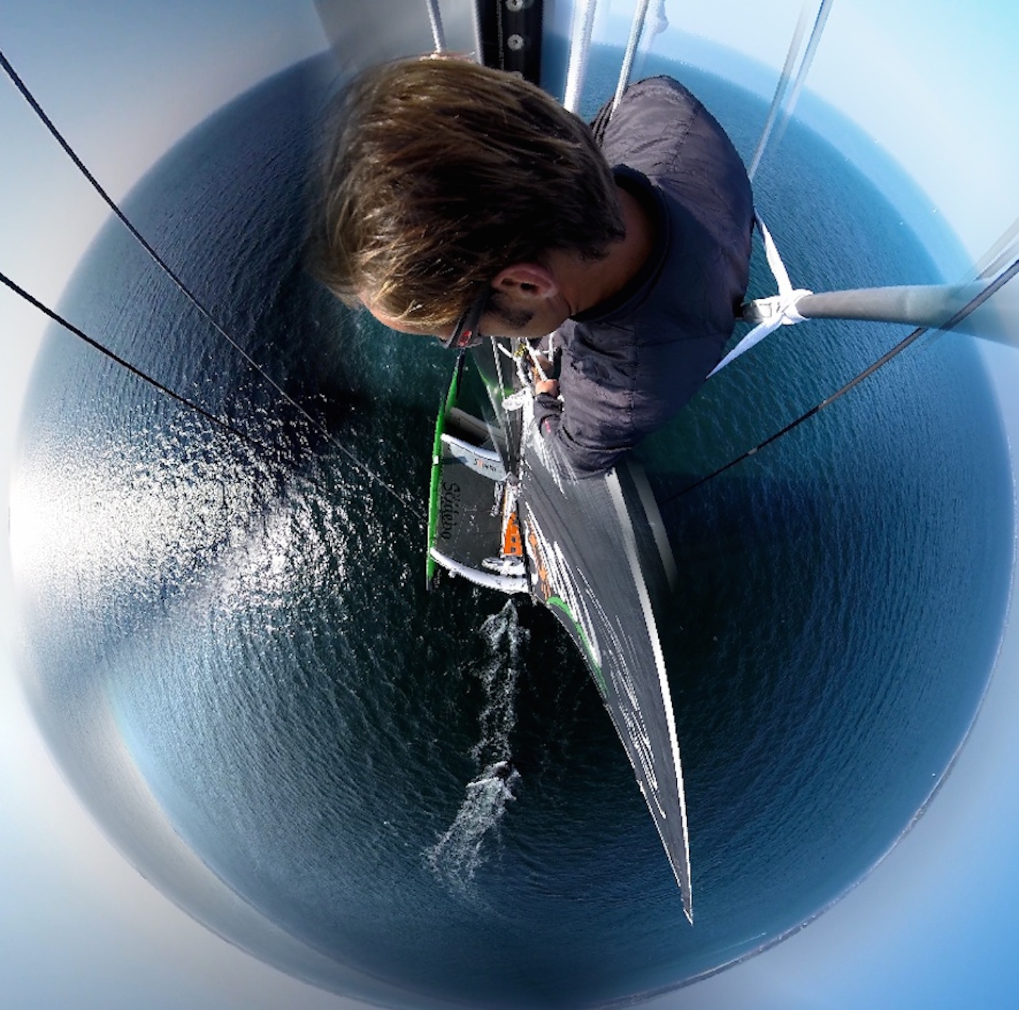 « Il est toujours compliqué de se rendre compte, en images, des proportions de nos bateaux comme de leur vitesse. J’ai été assez bluffé par le résultat des vidéos à 360°, notamment par la séquence tournée tout à l’avant de Sodebo Ultim’ où la sensation de vitesse est bien là, » confie le skipper Thomas Coville qui convoie dans quelques heures son trimaran à Saint-Malo.