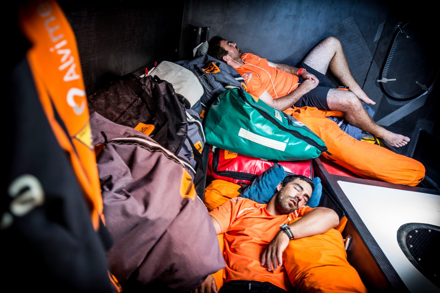 Aujourd’hui, nous étions un peu occupés avec Team Alvimedica. Ils n’étaient que quatre milles devant nous. A midi, nous les avons rattrapés et dans la soirée, nous avons réussi à les dépasser. C’est très motivant de naviguer aussi près d’un autre bateau. Cela t’oblige à mieux naviguer quelques soient les conditions. C’est une course que tu gagnes en travaillant plus dur jour après jour. Si tu fais le nécessaire pour naviguer juste 0.5 nœuds plus vite que les autres… Au bout de 24 heures, tu as gagné 12 milles.