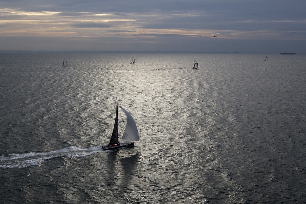 C’est une flotte compacte qui évolue au sud de l’Angleterre en ce premier jour de course. Mené par Marc Guillemot et Yann Elies, Safran navigue vite et bien. La glisse est parfaite, mais les conditions son t difficiles à bord. Les 7 premiers Open 60 se tiennent en 7 milles avec un décalage latéral nord-sud de 21 milles. Derrière ce premier groupe (Virbac Papres 3, PRB, Macif, Groupe Beel, Hugo Boss et Cheminées Poujoulat), Akena Vérandas emmène le deuxième groupe, composé de Gamesa, le plus au nord de la flotte, Banque Populaire, DCNS 1000, Bureau Vallée et Mirabaud. L’arrivée des premières lueurs du jour va permettre aux marins de faire un premier bilan de la nuit et vérifier le bon état de leur monture. Tous attendent désormais la bascule pour pouvoir affiner une première stratégie.