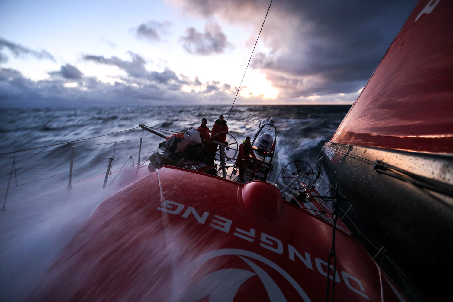 Le vent est resté stable durant toute la nuit, environ une dizaine de nœuds. Les Volvo Ocean 65 progressent tous bâbord amure dans un vent variant de 330° à 353°.