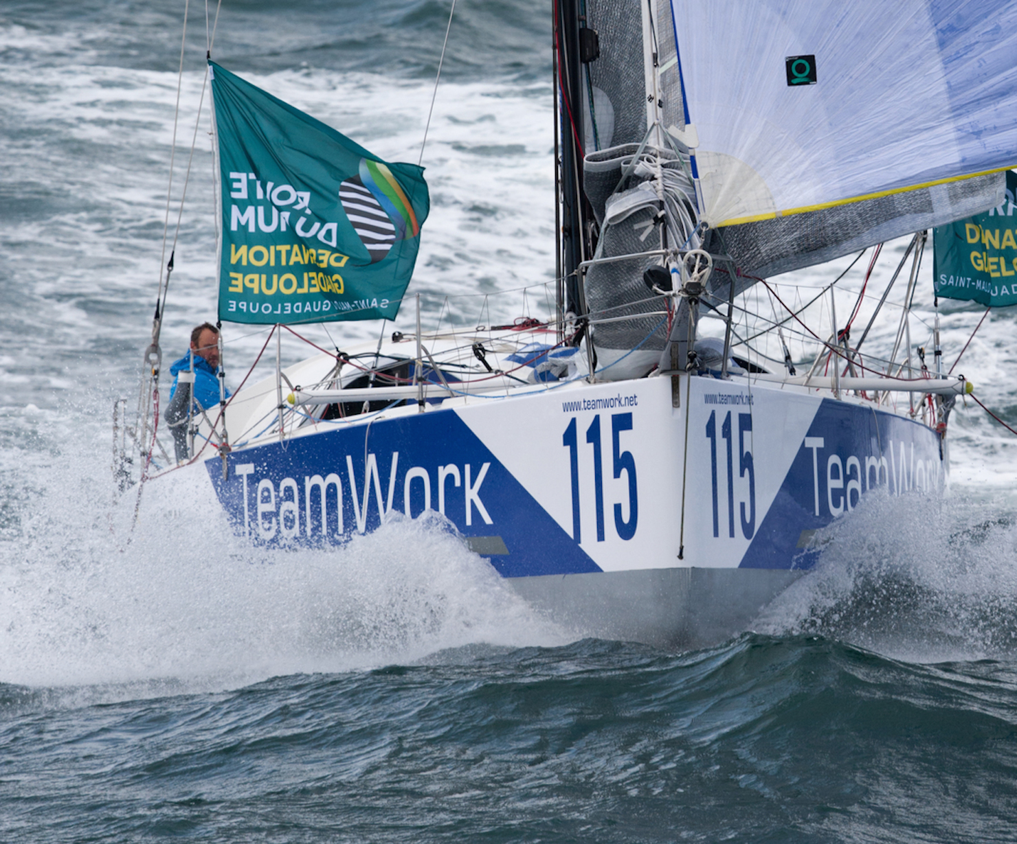 [quote]Après la grosse frayeur du départ, c’est un sentiment mélangé entre le regret que Bertrand n’ai pu lutter en tête du fait de l’avarie cumulée aux conditions météo défavorables, et le bonheur qu’il ait pu poursuivre la course de son rêve d’enfant ainsi que la fierté de le voir remonter au classement. Tout Teamwork était avec lui tout au long de cette Route du Rhum. Après des années de 6.50 nous faisons l’apprentissage du niveau supérieur en Class40 et allons persévérer pour nous améliorer et obtenir de bons résultats. [/quote]