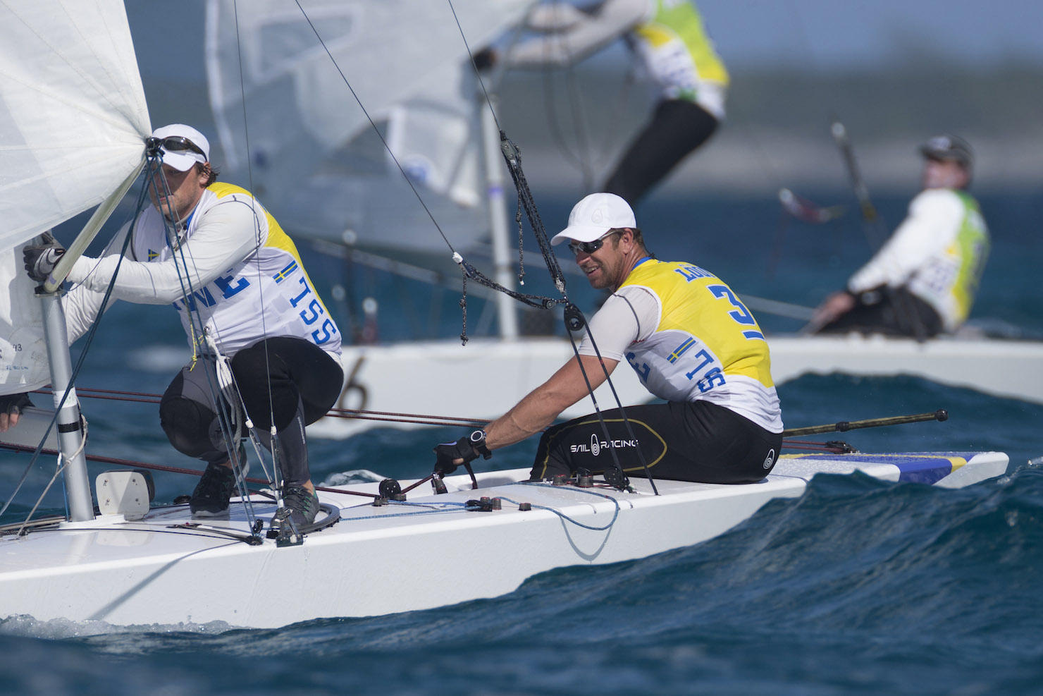 Aujourd’hui aux Bahamas, nous avons assisté à une nouvelle journée faite d’incroyables régates. Arrivé aux deux tiers des phases qualificatives, le couple américain Mendelblatt/Fatih a arraché le leadership au duo Scheidt/Prada. Les spectateurs ont pu suivre trois nouvelles manches, qui se sont déroulées avec un vent fort qui nous a laissé entrevoir des échanges ardents entre les 20 protagonistes de cet évènement de haut niveau. Encore une fois, de nombreux fans ont pu suivre les skippers en pleine action sur : live.starsailors.com. Derrière leurs écrans, ils ont pu assister à des manoeuvres de haut vol, à des virements au coude-à-coude, et à des résultats surprises. Le live streaming en HD était renforcé cette fois encore par le tracking 3D de Virtual Eye. Et cerise sur le gâteau, Dennis Conner, le quadruple gagnant de la Coupe de l’America et ancien Champion du monde de Star Class, nous a rendu visite au Nassau Yacht Club.