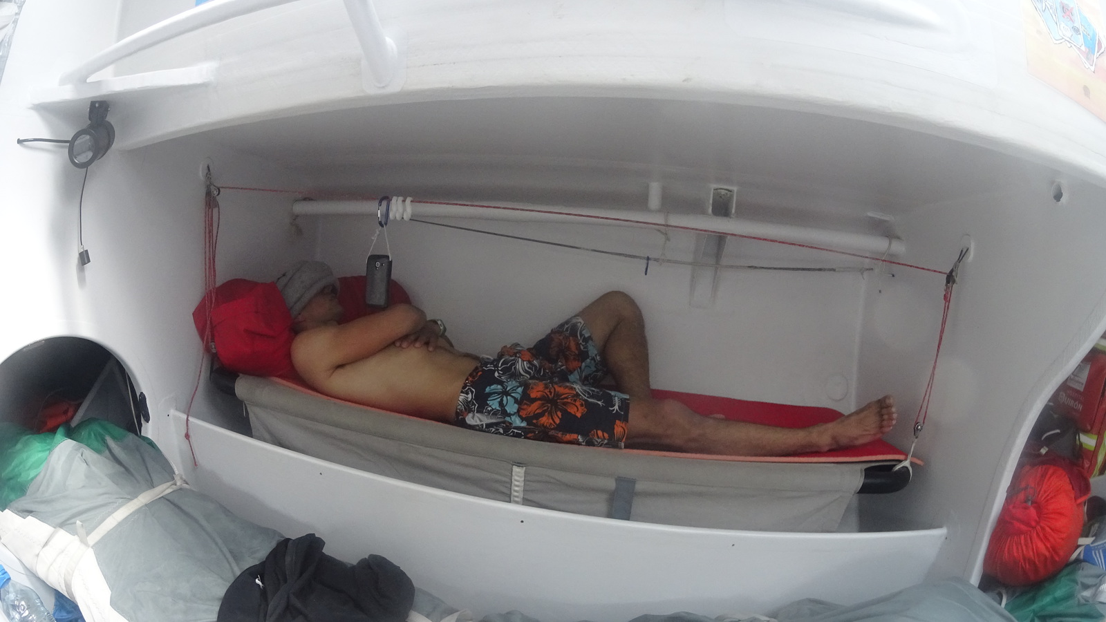 « En ce moment, il fait gris et il reste de la houle des forts alizés que nous avons eus. Il pleut et il fait très chaud. Maintenant, la mer est à 28-29 degrés. Je ne sais pas trop pour le vent. Nous ne nous sommes pas beaucoup préoccupés de la météo des prochains jours. Nous avons juste jeté un œil et nous devons prendre du temps pour analyser tout cela. Mais je crois que nous aurons du vent. Je l’espère. Il y a une grosse pression mais nous devons traverser l’équateur quelque part sans savoir comment pour l’instant. Ces derniers jours, nous avons navigué avec trois voiles en moins et nous avons essayé de garder notre vitesse, mais nous ne pouvions hisser toutes nos voiles. Nous sommes de nouveau à 100% après les réparations de la nuit dernière. C’est pourquoi nous sommes contents. »