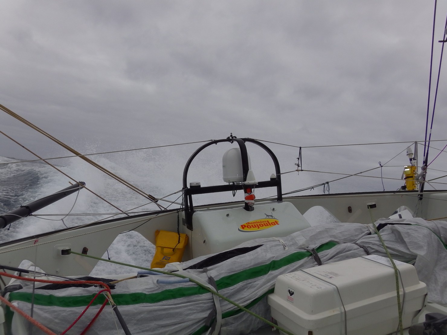 [quote]Il fait froid, de plus en plus froid chaque jour. Nous sommes passés de 15-20 nœuds de vent et 30°C de température extérieure à 30 nœuds et 3°C et donc, nous sommes passés des shorts et tongs, aux bottes et polaires. Nous avons entre 30 et 35 nœuds , nous naviguons avec un ris dans la grand voile, le solent, donc c’est assez facile pour le moment. C’est ce que nous attendions, nous y sommes préparés. C’est une autre façon de naviguer maintenant. La première des difficultés devrait venir avec l‘anticyclone de Madagascar qui pourrait bloquer les premiers bateaux dans les dix prochains jours. Cela peut être l’occasion pour nous d’attaquer plus, et si nous avons un peu de réussite… Mais nous devrons bien naviguer pour revenir sur GAES car c’est un bateau vraiment rapide et ils naviguent vraiment bien.[/quote]