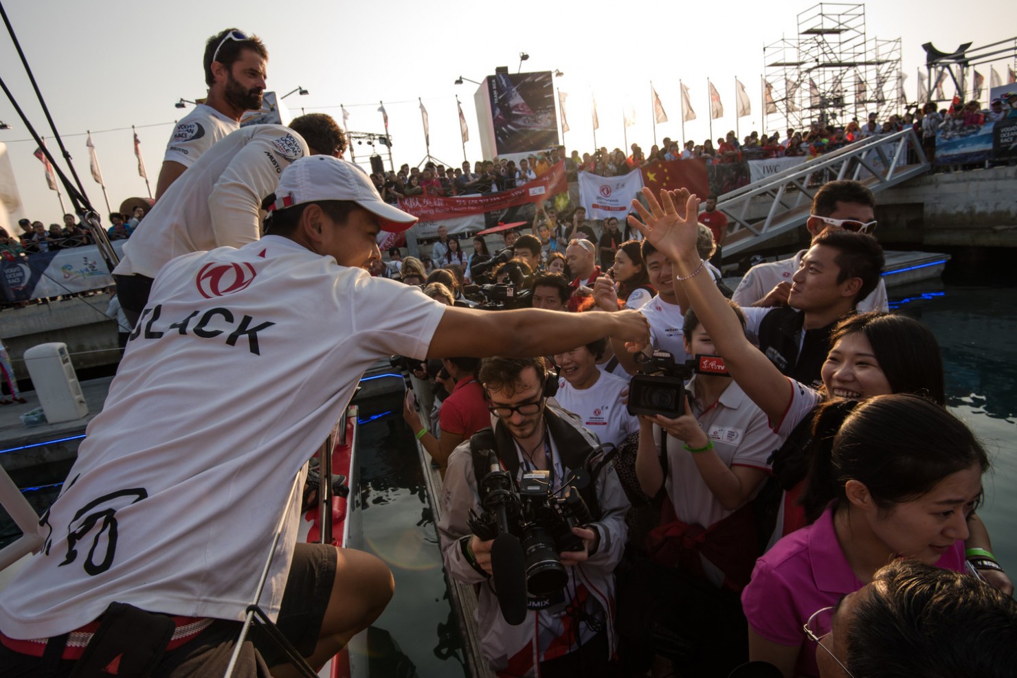 Quelques minutes après avoir franchi la ligne, le Français a salué le public en mandarin avant de prendre la mesure de cette victoire. Une première pour un équipage chinois sur la Volvo Ocean Race (Green Dragon en 2008-09 et Team Sanya en 2011-12 battaient eux aussi pavillon chinois). « C’est fantastique. C’était dur, très long, très difficile de rester en tête. A chaque fois qu’on arrivait à creuser notre avance, le groupe de derrière revenait sur nous. C’est l’étape la plus stressante que j’ai pu disputer. Ce projet chinois est fantastique. C’est un résultat majeur pour la Chine, pour la voile chinoise. Nous sommes très fiers de cela » a-t-il expliqué.