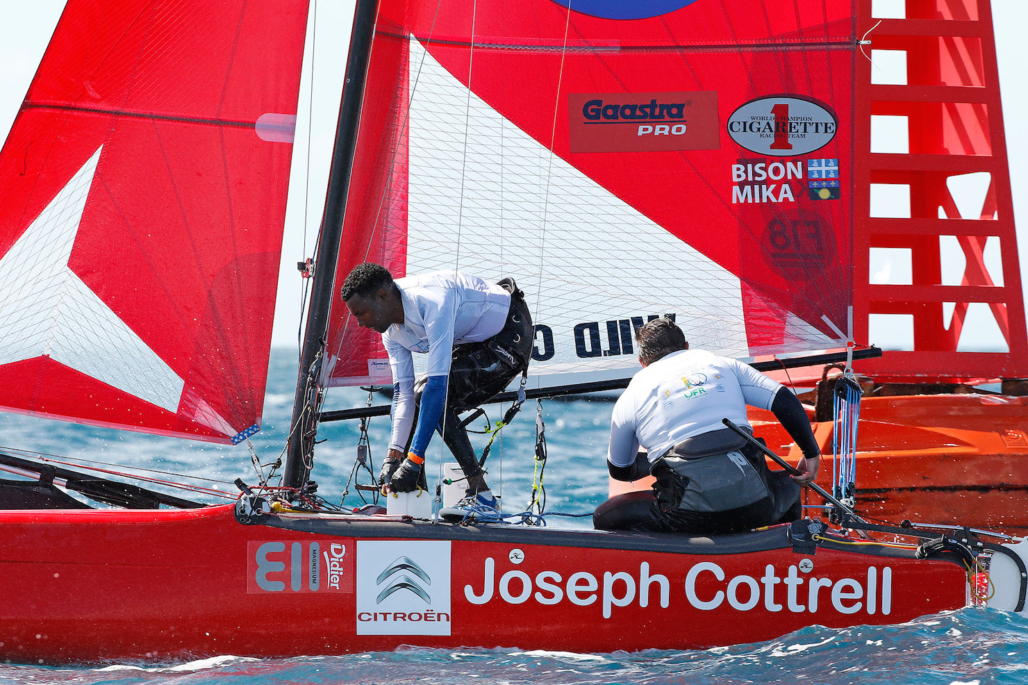 « On a pris un départ en retard. Après on s’est battus et on a cravaché. Au niveau du rocher du Diamant, on est passés au ras comme on a l’habitude de faire ce qui nous a permis de revenir dans la course. Je savais qu’il fallait jouer tactiquement entre l’Anse Mabouya et Sainte Luce. On a été chercher les adonnantes à terre et on est passés devant tout le monde sur l’avant dernière marque. Jusqu’à la baie de Saint-Anne on tient cette première place mais on cherche à marquer les frères Hainneville, seconds, en oubliant un peu les autres équipages. A ce moment là, Seb Rogues et Emmanuel Boulogne trouvent un couloir de vent et s’envolent vers la ligne devant nous. C’est rageant mais il y a du positif : terminer à 10 secondes de premiers, vu le niveau des concurrents, c’est déjà un exploit. »