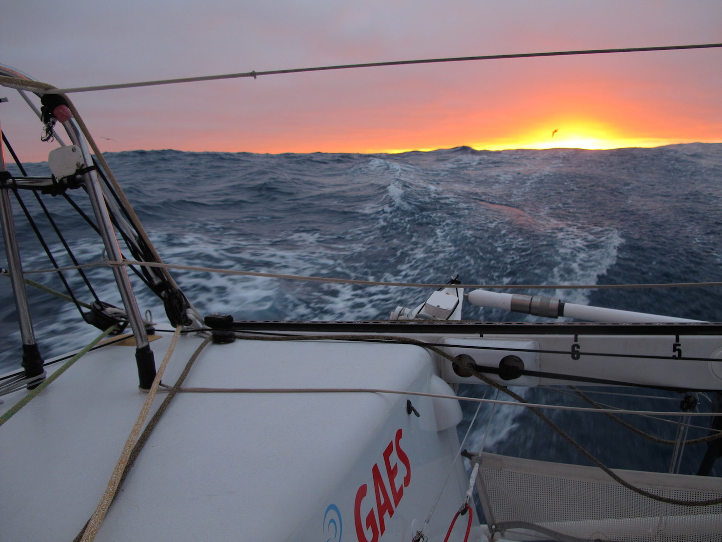 [quote]Ça va bien, c’est un petit matin gris aujourd’hui, avec un peu moins de vent qu’hier. On se rapproche de l’anticyclone mais on va garder de la pression. Ça nous permet de revenir un peu sur GAES qui est devant nous. Ça met du piment dans le jeu et comme la route est très longue, si nous sommes à 200 ou 250 milles à la sortie de l’anticyclone de Mascareignes, ce sera bien. Ça nous permettra de mettre un peu de charbon dans la brise et de nous rapprocher petit à petit, c’est l’objectif. C’est la quatrième fois que je viens par ici. C’est assez clément pour l’instant, la météo est assez tranquille et l’ambiance est bonne. J’étais passé par ici en 2008 avec Groupama 3, Jacques Caraës était d’ailleurs avec nous. Nous avions fait un bord de reaching pendant douze jours dans une mer formée. On ne pouvait pas descendre plus sud car il y avait trop de vent, et trop de mer. On s’était fait fracasser dans le multicoque à ne pas savoir comment faire pour l’arrêter ou pour accélérer. C’était un enfer. On a vécu vraiment des moments difficiles. Et au final, ça s’est fini à 90 milles de la Nouvelle-Zélande, le bras était tellement abîmé qu’il a fini par casser. On est rentré en hélicoptère.[/quote]