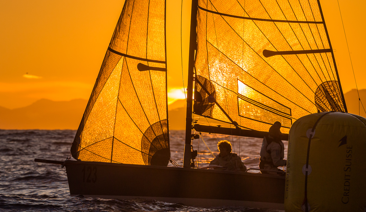 Avec un vent de Sud-Ouest de 6 nœuds un peu capricieux, les 92 équipages répartis en 6 séries (Star, Surprise, SB20, IRC 3&4, Smeralda 888 et Dragon) sur deux ronds, savaient que le plan d’eau monégasque, réputé très technique, serait difficile à apprivoiser aujourd’hui. Et c’est à la nuit tombante, sous un ciel orangé d’hiver que les derniers concurrents en lice, les IRC et les SB20 ont rejoint le port, offrant aux membres du YCM et passionnés de voile un magnifique spectacle.