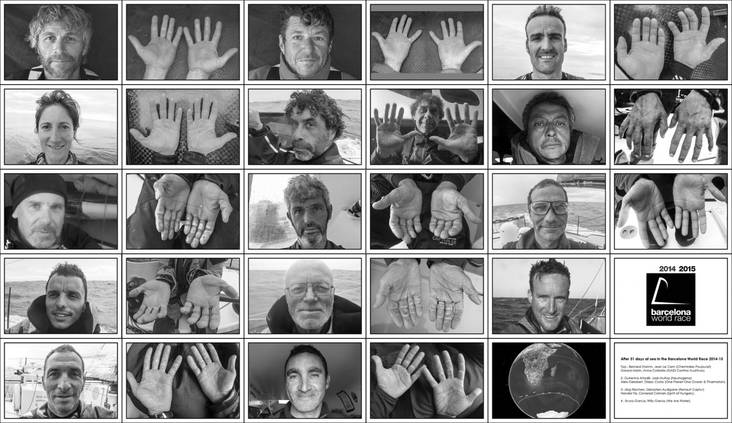 Depuis un mois que les marins de la Barcelona World Race sont partis, les visages se sont creusés, les corps se sont transformés, les mains sont ravinées. Nous avons demandé aux marins en course de nous envoyer une photo de leur visage et de leurs mains à l’issue de ce premier mois de mer. Parce qu’une bonne image parle souvent autant que bien des longs discours.