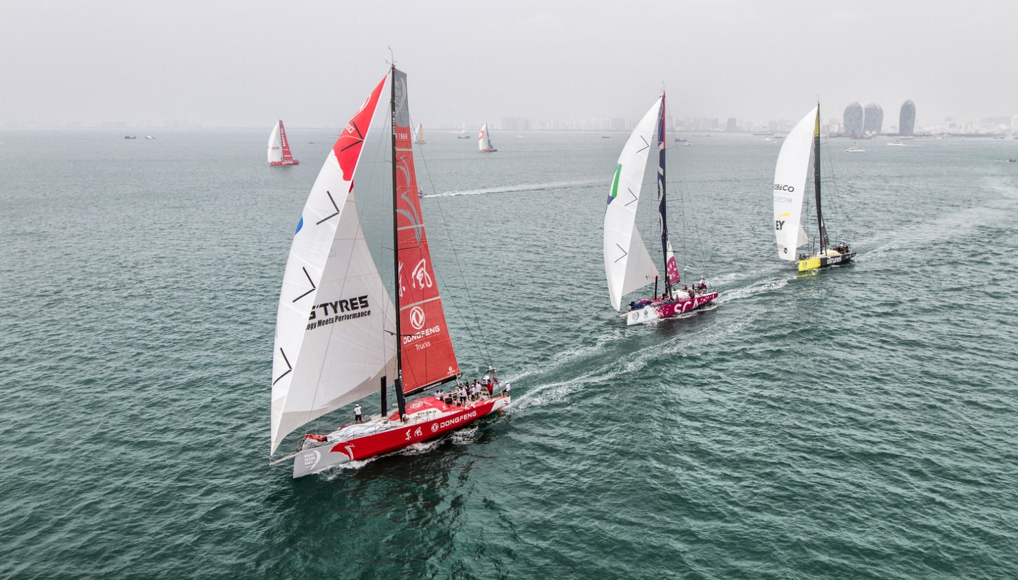A 7 heures ce matin (14 heures en Chine), le ballet des Volvo Ocean 65 s’est élancé pour la course In-port au pied des immenses buildings de Sanya.