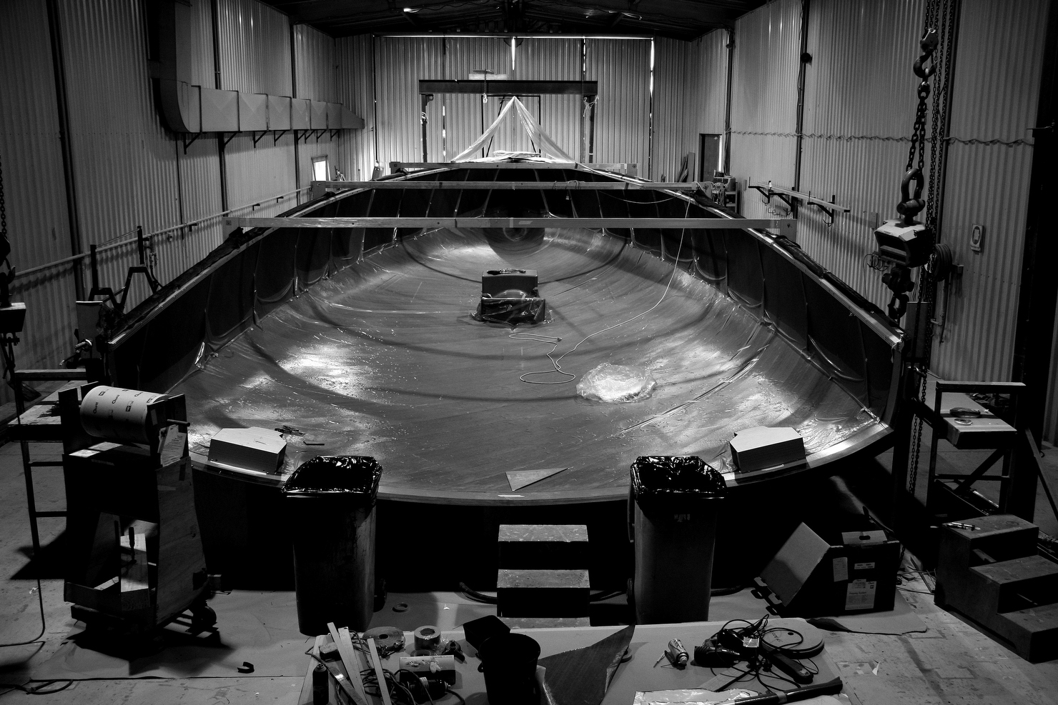 Les pièces ne sont certes pas encore assemblées mais avec un minimum d’imagination se devine déjà le futur 60′ Edmond de Rothschild. Troisième monocoque de nouvelle génération imaginé par le consortium Verdier – VPLP, avec la collaboration étroite du bureau d’études du Gitana Team, le bateau propose un style racé : carène planante dotée d’une étrave très volumineuse pour augmenter les performances de vitesse du navire, forme de coque dite frégatée (signifie que le livet est moins large que le bouchain) afin de limiter le développé du pont et d’ainsi gagner en légèreté, diminution du franc bord ce qui accentue la sensation de largeur du bateau, pont plat, cockpit ouvert, sans oublier des foils en lieu et place des dérives droites des anciennes générations . Gitana 16 ne manquera pas de caractère.