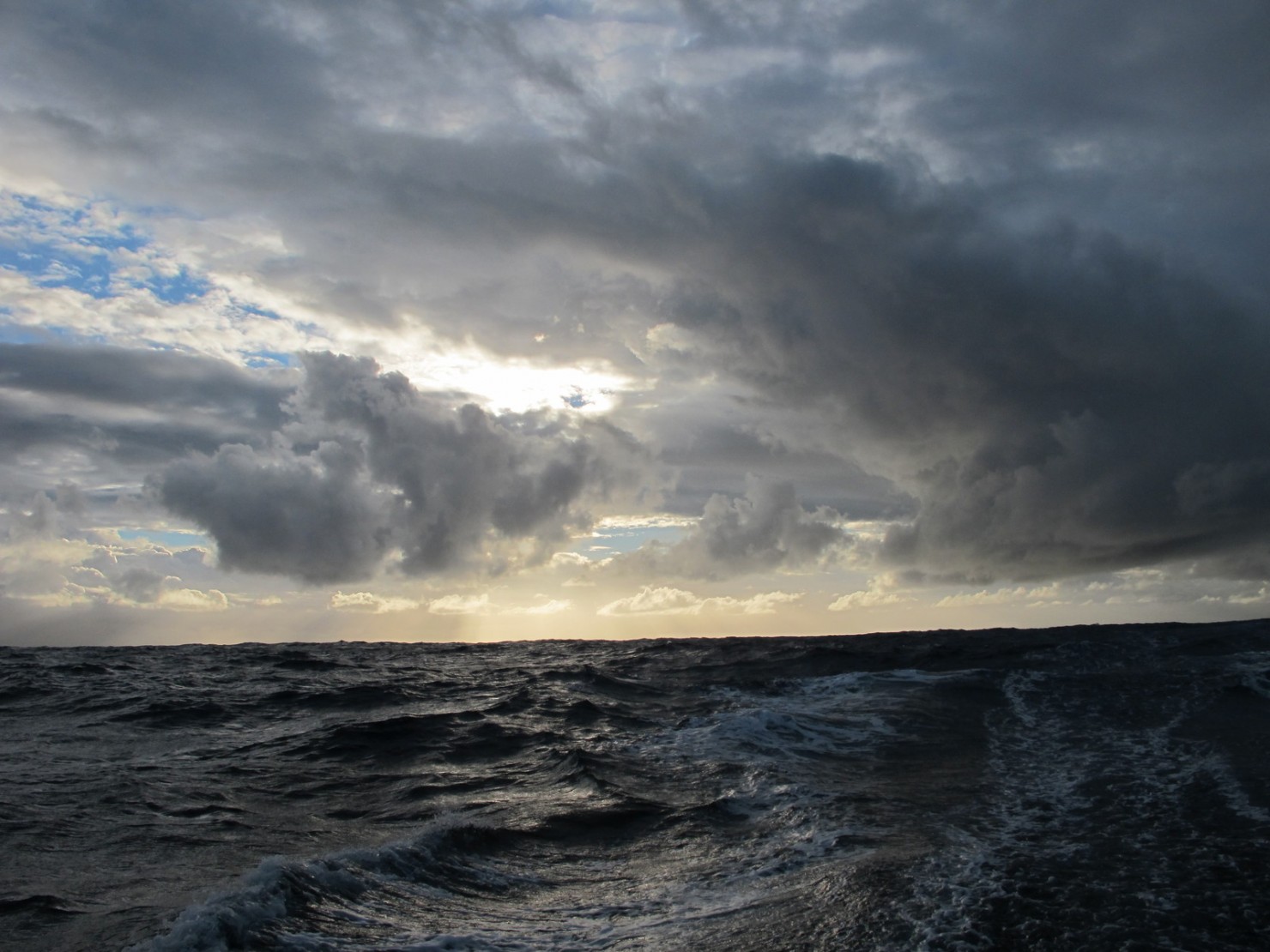 GAES navigue à 30 nœuds. C’est vraiment inconfortable à l’intérieur. Nous devons dormir attaché dans les bannettes superposées parce que parfois, nous tombons quand le bateau plante. Et, nous naviguons avec le pilote automatique parce qu’il navigue mieux que nous dans ces conditions. Et nous devons essayer de ne pas tomber. Nous allons vraiment vite…