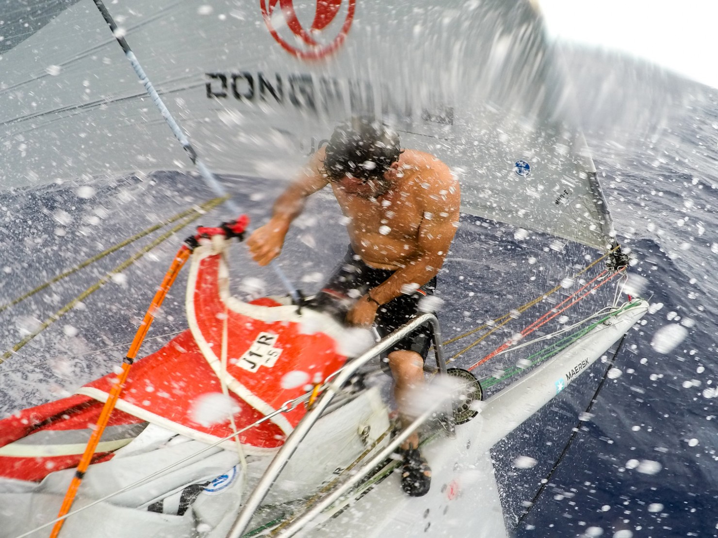 « C’est ça le pot au noir ? » demande Sam Greenfield. « Nous avons eu les conditions les plus rapides et les plus humides de toute l’étape ce matin. Nous avons atteint 24 nœuds ! »
