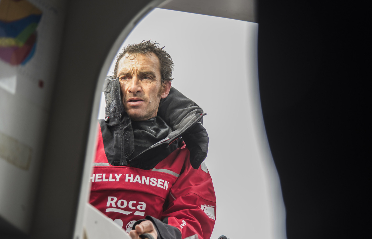 On a de nouveau des soucis de safran. Tribord amure, le bateau est ingouvernable. C’est pourquoi nous sommes si lents pour l’instant. Quand nous avons empanné, les safrans étaient constamment sur le point de décrocher. La seule solution, c’était de réduire la toile, naviguer sous trinquette et grand-voile à deux ris. Nous attendons le jour pour voir si nous trouvons une solution, sinon, il faudra naviguer sous-toilé jusqu’au cap Horn. Nous sommes actuellement au milieu de nulle part et nous ne pouvons pas nous permettre de casser quelque chose. C’est frustrant parce que nous naviguons pour la survie du bateau, nous n’avons plus le sentiment d’être vraiment en course. Jusqu’au cap Horn, nous risquons de ne pas pouvoir naviguer avec une voile en tête de mât.