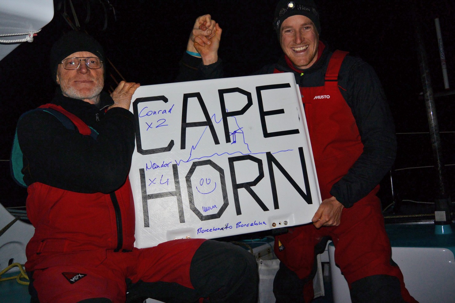 Portés par un solide flux de vents forts (40 nœuds établis, 50 dans les rafales), obligés de suivre la cadence infernale imposée ces derniers jours par une dernière dépression australe, Nandor Fa (61 ans) et Conrad Colman (31 ans) ont dû redoubler d’efforts dans des conditions qui ne leur ont laissé aucun répit. En bons marins, à l’écoute de leur bateau éprouvé, ils ont rejoint le célèbre rocher noir dans 25 nœuds de vent et sur une mer formée mais maniable. Ils l’ont paré au plus près, à 2,8 milles, après 74 jours, 18 heures et 13 minutes de course depuis le départ de Barcelone, le 31 décembre 2014.