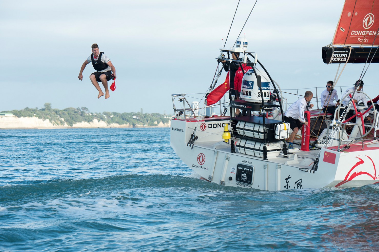 Belle régate dans le golfe d’Hauraki. Jolies conditions, et bonne entrée en matière pour Dongfeng.